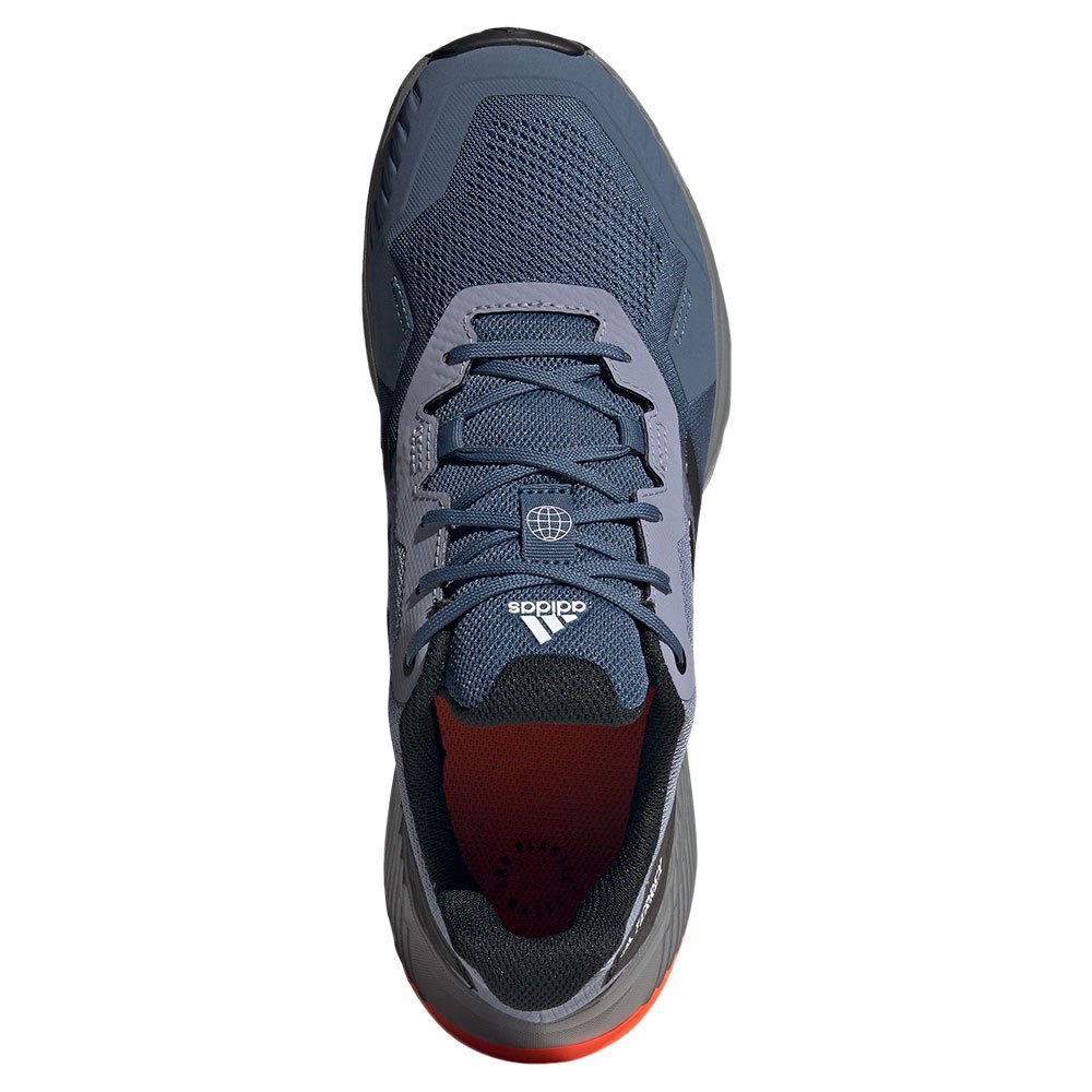 A parte superior da malha projetada é feita com tecido Primegreen obtido por um processo reciclado para oferecer ventilação e um ajuste confortável. As paredes laterais sintéticas elevadas fornecem reforço e bom suporte. Estes tênis de trilha apresentam biqueira protetora e cadarços tradicionais.