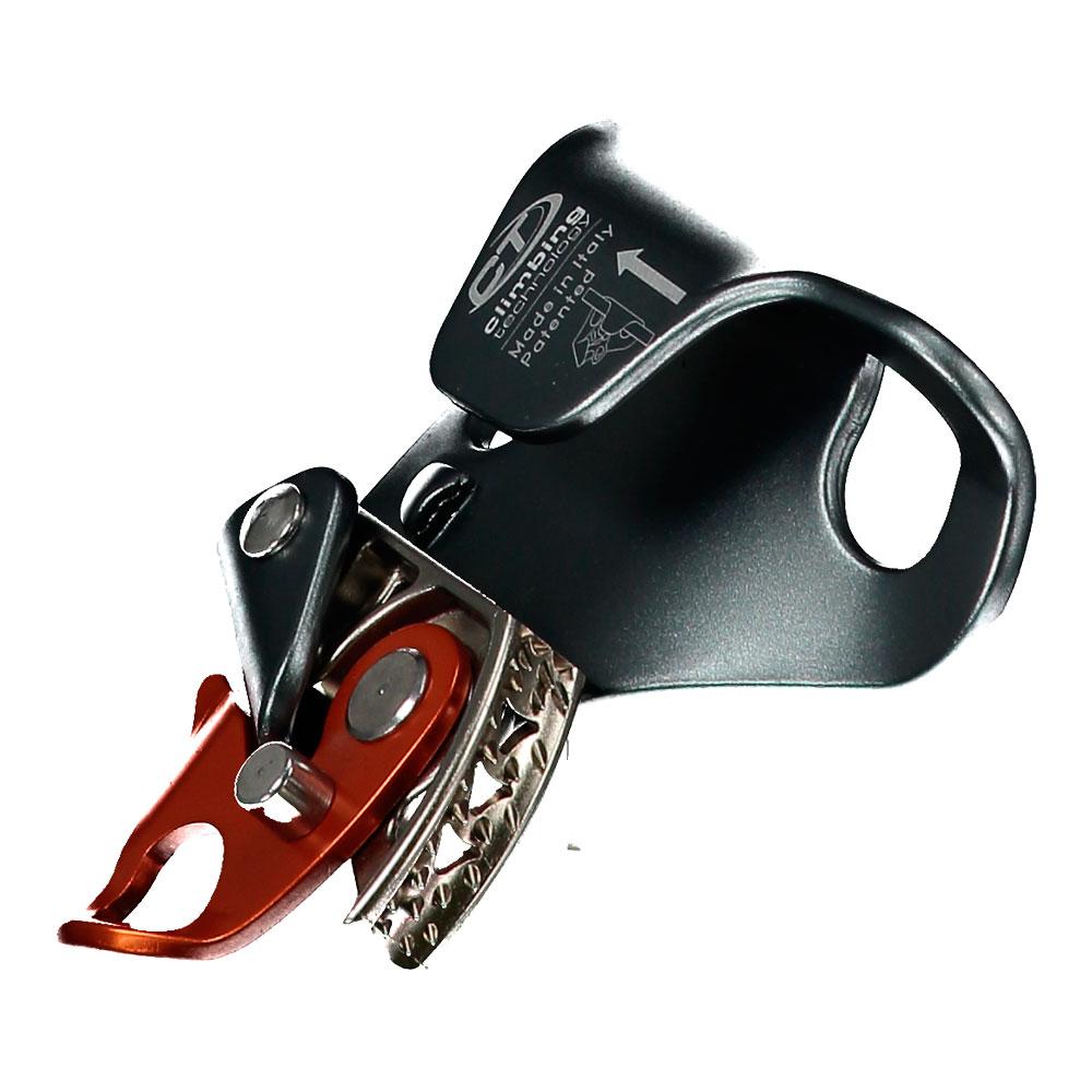 Câmara de aço, fabricada com tecnologia que implementa a resistência ao desgaste. Equipado com um conjunto de dentes que protege o desgaste da corda, mas é igualmente eficaz em bloquear e subir a corda. Ele também tem três slots para evitar o acúmulo de lama e reduzir o esforço necessário para deslizar o dispositivo pela corda sob qualquer condição (corda enlameada, congelada, etc.)