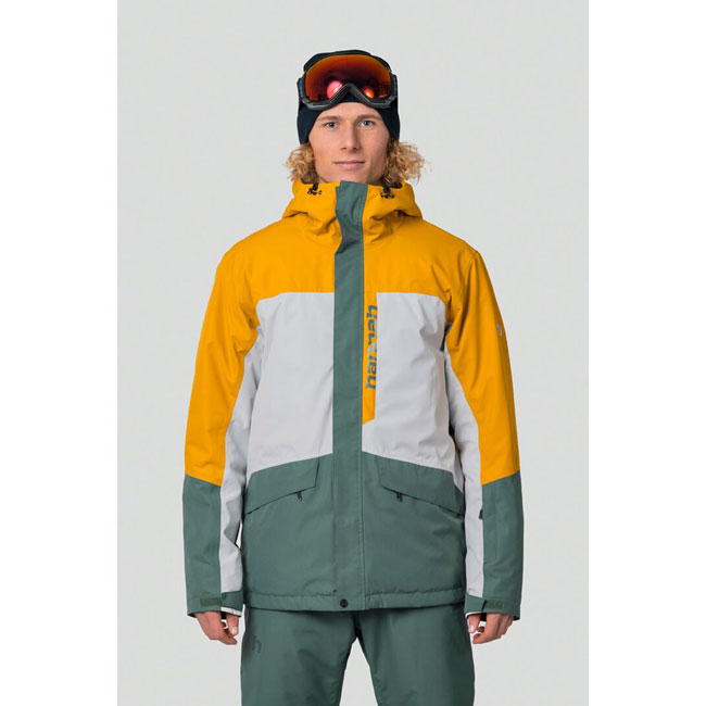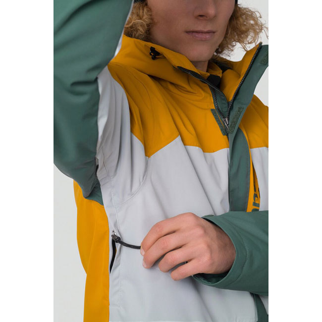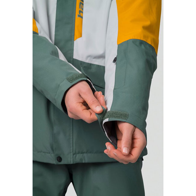 O material da membrana Resstex com coluna de água de 10.000 mm com tratamento DWR é complementado pelo enchimento isolante Duratherm Classic. O zíper central e o zíper do bolso no peito são à prova d’água. Durante o esqui na primavera, o usuário apreciará a ventilação lateral.