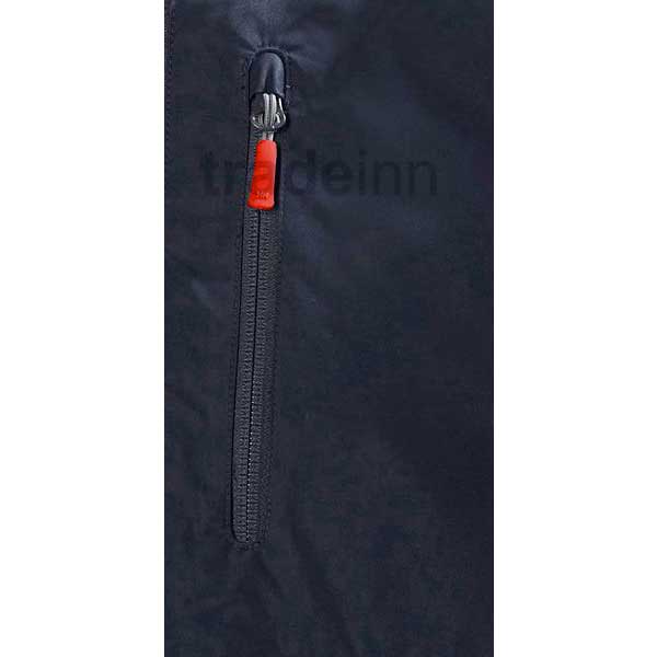 Possui dois bolsos laterais e um bolso no peito, todos com zíper. Possui capuz removível e gola alta para maior proteção. Possui zíper frontal totalmente repelente à água.