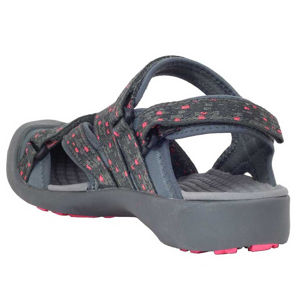 A biqueira reforçada oferece proteção completa, enquanto as almofadas na entressola EVA garantem passeios de verão mais agradáveis e sem complicações.