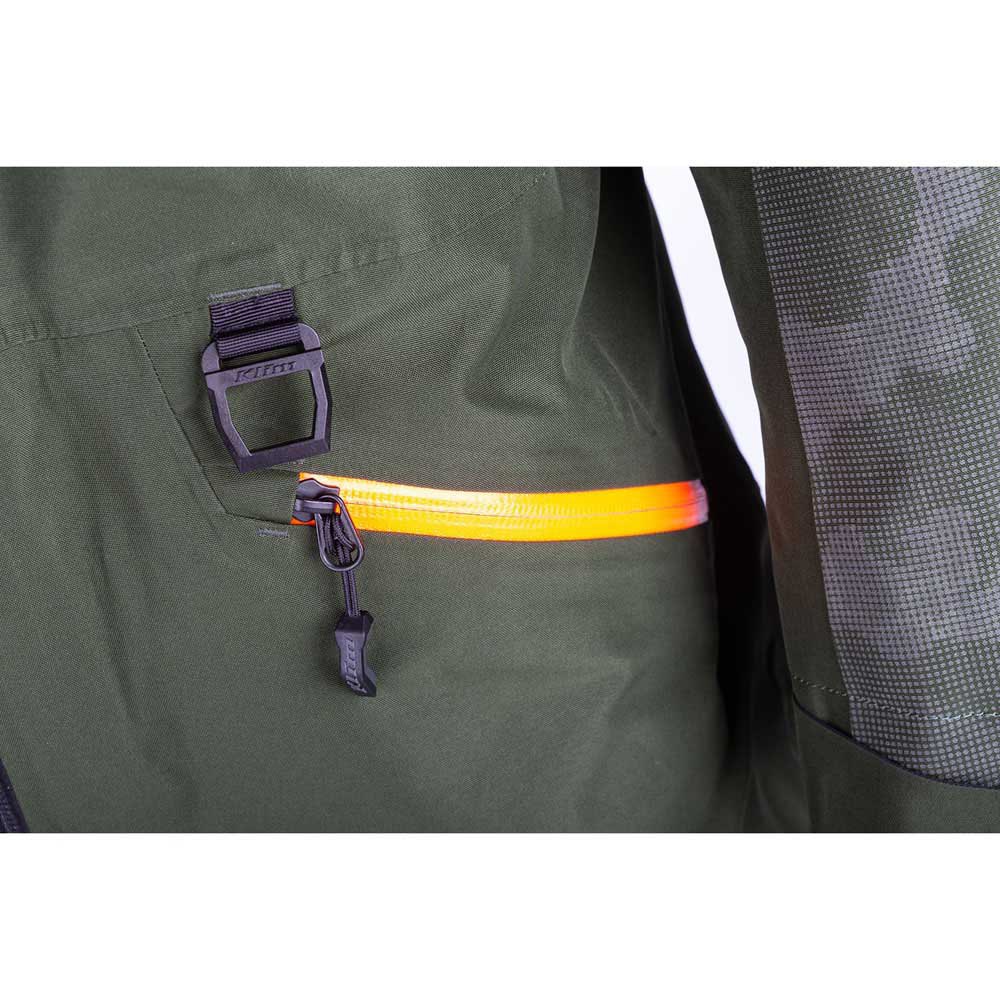 – Zíperes laterais de perna inteira com zíperes de duas cabeças