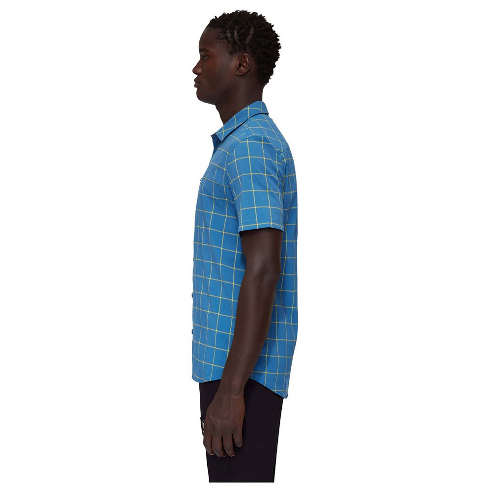 Uma camisa de manga curta para caminhadas, trekking e uso diário. A Mountain Shirt é levemente elástica, fica bem na sua pele e oferece proteção solar confiável. A camisa seca rapidamente e o tratamento antimicrobiano FreshTech reduz os odores desagradáveis. Detalhes práticos: o bolso no peito com zíper e um pano para limpeza de óculos integrado na parte interna da bainha. Uma camisa para conforto nos dias quentes de verão.