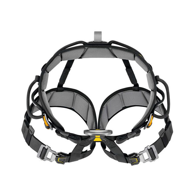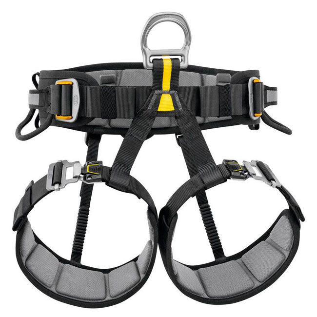 Arnês de assento leve e confortável da marca Petzl para operações de resgate em suspensão.